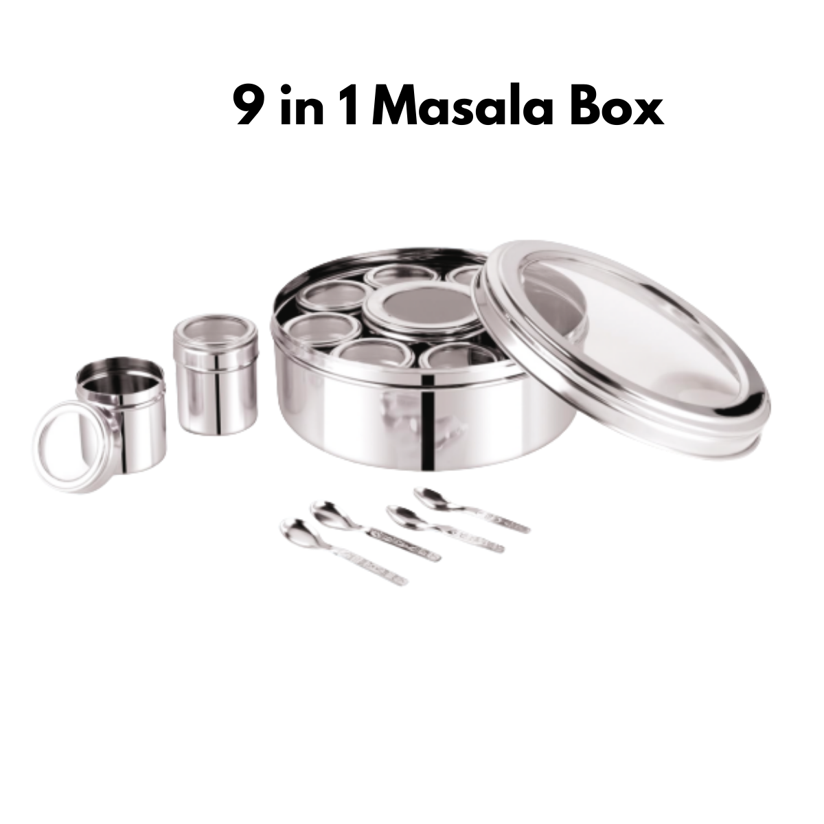 Built from high-quality food-grade stainless steel, this 9 in 1 masala box is perfect for kitchens that use a wide range of spices regularly. The larger capacity helps reduce clutter by keeping everything organized in a single container.